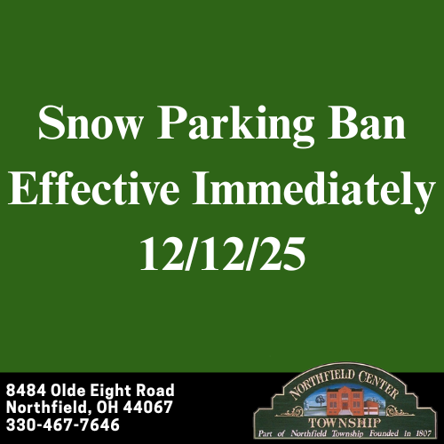 Northfield Center Township would like to inform residents that a Snow Parking Ban is now in effect and will remain in place throughout the weekend.