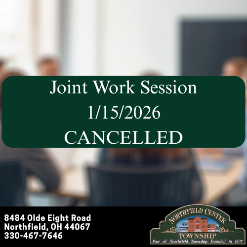 The Joint Work Session scheduled for Thursday, January 15th at 6:00 PM between the Board of Trustees, Zoning Commission, and Board of Zoning Appeals has been cancelled.