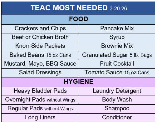 Every donation, big or small, makes a meaningful impact and helps TEAC respond to the growing needs within our area. We appreciate the continued compassion of our community in supporting TEAC and the important work they do every day.