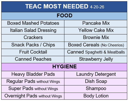 Every contribution helps TEAC meet the needs of our community. Thank you to everyone who continues to support their mission.